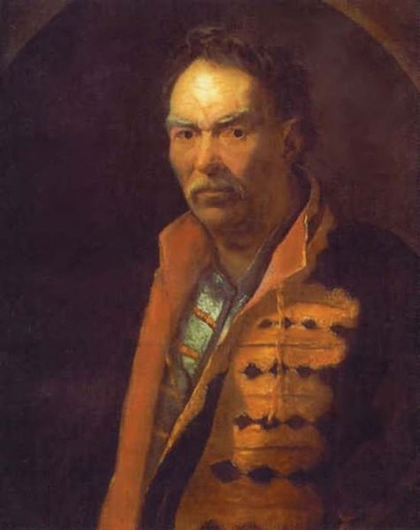 The early portraits by Nikitin had a strong influence of the traditional 17th century parsuna style, with no perspective, rigid local colors, and dark backgrounds, and his later portraits are typical Baroque paintings. Most art historians consider the Nikitin’s best portraits to be Chancelor G. I. Golovkin and A Malorossian Hetman. There are attribution problems with the subject of the portrait, with different historians arguing that he is either Ivan Mazepa, Ivan Skoropadsky, Kazimir Ian Sapega, or Pavlo Polubotok; however, they all are equivocal in emphasizing the psychological depth of the portrait.
