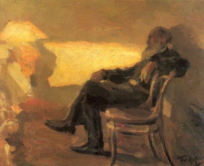 Leonid Pasternak was one of the first Russian painters who labelled himself an Impressionist. In Russia in the 1880s and 1890s such a proclamation was novel enough to draw attention to an artist. Leonid also was a member of the Peredvizhniki and Union of Russian Artists movements. He was a friend of Leo Tolstoy, for months lived in Yasnaya Polyana, and painted many portraits of the great writer, also illustrating his novels War and Peace and Resurrection. He was awarded a medal at the World Fair in Paris (1900) for his illustrations of Tolstoy’s novels.