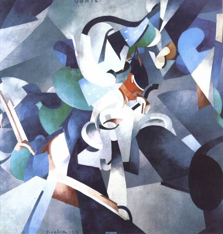 Early in life, Picabia was a follower of the Barbizon School, mixed with an imitation of Sisley. So at the mature age of 27 he was still in thrall to the 19th century. Matisse and the Fauvists changed all that, as did Picasso. Note his solemn cubist still life, done in 1909, and the timid imitation of Fauvist savagery in his Sierra Morena series (1909). It took Picabia a long time to get a grip on the revolution.