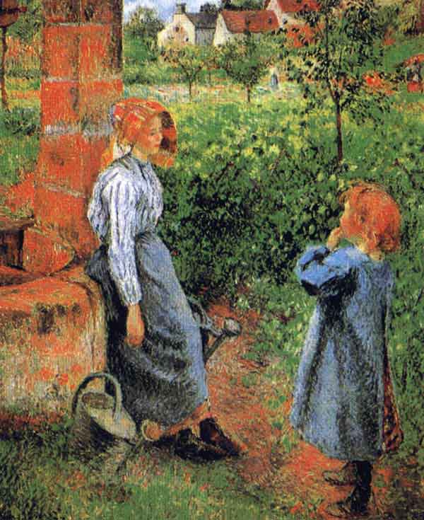 It was soon apparent that Pissarro was that rarity among artists, a tolerant, stable family man. He was also intellectual and gregarious, with an unusual gift for befriending fellow-artists. To this he added a unique gift: the capacity to remain friends with artists. Yet, by no means was Pissarro an appeaser or vacillator. On the contrary, he had strong opinions on art and at times castigated his fellows (for example Bonnard). But the artists he knew admired his steadfastness and integrity. And these were no ordinary artists; Corot, Courbet and Daubigny were his first major influences, then came Monet, Renoir, Degas, Sisley, Cezanne, Gaugin, Seurat and Signac. They comprised a truly formidable team, the younger members of which looked to the kindly Pissarro as their muse or guide.