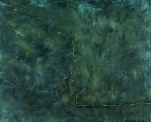 Poliakoff’s strength was as a colorist, and once he had dispensed with line he remained consistent for the rest of his life. His palette went through phases, from brighter to almost monochrome in the late 1950’s and mid-1960’s, but the overwhelming majority of his paintings follow the same pattern: a quadrangular arrangement of rectangular shapes each of one color but repeated in the picture, two, three or four colors only being used. The rectangular canvas is integral to this design, the composition usually being balanced in the corners.