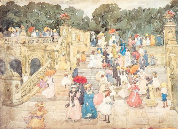 Prendergast’s style changed after a trip to Venice in 1898. Prendergast greatly appreciated the work of Vittore Carpaccio, who made Italian genre scenes. Under the influence of Carpaccio, Prendergast’s style became even more complex and pattern oriented. Prendergast was also influenced by the structure and expressive colors in Cezanne paintings. Few other American artists at that time appreciated Cezanne’s innovative style.
