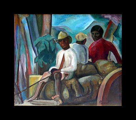 Ravenet’s paintings were almost always of idyllic images. About mid-career, Ravenet started painting in the Vanguard style of his contemporaries, painting “guarijo’s” and “campesino’s”—rural cowboys and farmhands of Cuba’s countryside. Usually, Ravenet’s style was more along the lines of painting an almost whimsical world. His portraits of women would usually be executed with idyllic backgrounds. He would also paint circus scenes, and pictures of mothers with their children. His work rarely had a somber or disturbing tone, but still managed to purvey a powerful message all the same.