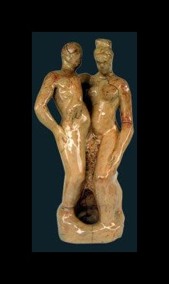 Though he worked in ceramics quite extensively, Ravenet was not well known for them. He would usually paint decorative pottery, cups and plates with very traditional Cuban styles. His ceramics were probably the most reflective area of his Cuban heritage, and the bright and tropical color palate he usually chose and native symbols he emblazoned on them were proof of this. His small ceramic statues were also reminiscent of primitive Cuba, and were usually very simple with fluid lined statues of people. Ravenet would also often work alongside Amelia Pelaéz as she made ceramics too.
