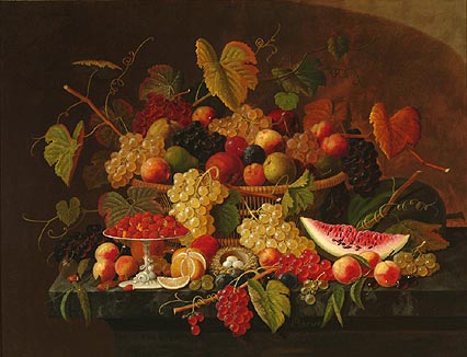 German native Severin Roesen is most famous for his abundant fruit and flower still lifes and is today recognized as one of the major American still-life painters of the mid-nineteenth century.