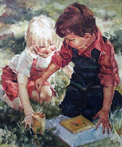 Roka was despised by the art world, he was nevertheless loved by the people. He became famous for his numerous variations of the Gipsy Girl, exotic looking Gypsies in a pin-up style and sentimental portraits of children with their pet dogs. His other favorite subjects were Hungarian folklore, especially Gipsy people dancing csárdás.