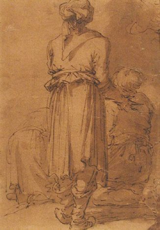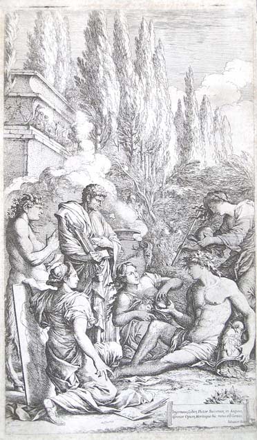 He was a significant etcher, with a highly popular and influential series of small prints of soldiers, and a number of larger and very ambitious subjects. Rosa was indisputably a leader in that tendency towards the romantic and picturesque. It is an open question how influential his work was in the following decades or in following centuries. Wittkower rightly states that it is his landscapes, not his grand historical or religious dramas, that Rosa truly expresses a novel and innate spark; he may have dismissed them as frivolous cappricci in comparison to his other themes, but these academically conventional canvases often restrained his rebellious streak. In general, in landscapes he avoided the idyllic and pastoral calm countrysides of Claude Lorraine and Paul Brill, and created brooding, melancholic fantasies, awash in ruins and brigands. The contrasts between the artists of his day is illustrated by the lines of Poetry written in 1748: Whate’er Lorraine light touched with softening hue/ Or savage Rosa dashed, or learned Poussin drew. He influenced Gaspar Dughet’s landscape style.