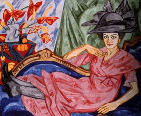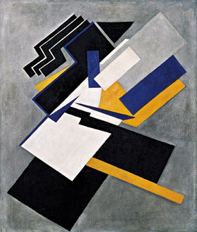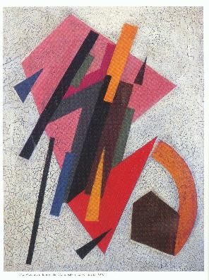 In 1916, she joined the group of Russian avant-garde artists Supremus that was led by Kazimir Malevich. By this time her paintings, developed from the influences of Cubism and Italian Futurism, and took an entirely original departure into pure abstraction in which the composition is organized by the visual weight and relationship of color.