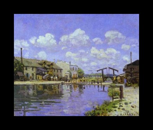 One certain way to identify a Sisley work, would be to take careful notice of the scenery and certain details. Most commonly, his signature appears as “Sisley” in the lower right hand corner of his paintings. Sisley had a fascination with the sky, and his landscapes are dominated by this fascination. The sky in almost all of Sisley’s work takes on an almost ethereal value–his color palette is true to life, as “The Saint-Martin Canal” (1872) shows. Sisley used color and light to indicate the weather and time of day in his paintings. He also produced many landscapes of snow covered fields and country homes, and they way he shows light reflecting off of the snow is magnificent. His colors have been called soft and harmonious, and are similar to the style of painter Camille Corot, whom Sisley was highly influenced by.