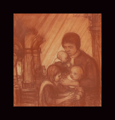 Even though he lived in extreme poverty, this was said to be the happiest years of Smits life. He went on to have three children with Malvina, and created portraits of his family quite often. These, among other paintings of his, were exhibited in Dresden and Munich, where he received gold medals for his watercolor paintings. However, these happy days came to an end for Smits when Malvina and a new infant daughter died within days of each other in 1899. Smits remarried in 1901 to Josine van Cauteren. By this time, he was 45 years old, and was honored in Antwerp by an exhibition dedicated to his work. That following year, he took in his elderly parents after they had been robbed, placing an even further financial burden on him. Despite the fact that he was highly regarded in the art world and among his Belgian peers, Smits work sadly was not selling during his lifetime. Many of his etchings were created during the period (around 1910) due to the fact that his paintings were not selling.