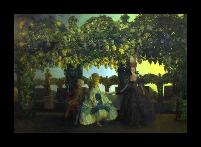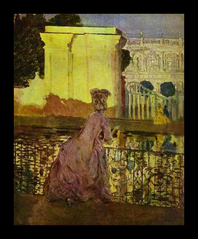 Towards the end of his studies, Somov began to switch gears from Repin-inspired compositions to paintings of men and women in 18th century dress. These paintings were far from the Realist work that his contemporaries were producing at the time. Full of poetry and elegance, these paintings created towards the end of the 19th century were the precursors to his Symbolist pieces. Some art critics have said that his work as a student was not that of a student, but that of a competent artist who has already secured a style of his own.