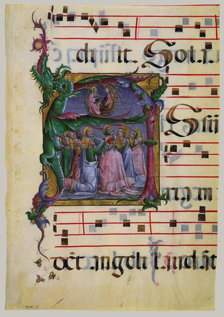 • Letter A miniature from choirbook (Metropolitan Museum, New York)