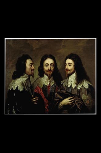 Repéré par Charles Ier, grand collectionneur d’art, il fut appelé en Angleterre et devint peintre officiel de cour en 1632. Une maison lui fut offerte à Blackfriars, dans les environs de Londres, et il reçut, en plus des émoluments de ses commandes, une pension royale qui lui permettait de vivre confortablement. Ce fut dans cet atelier qu’il réalisa les portraits de Charles Ier et de son épouse, Henriette Marie de France, de leurs enfants et des nombreux personnages de la cour du roi. Il a épousé au bout de quelques années Marie Ruthven, qui est alors devenue dame de compagnie de la reine, probablement sur l’ordre du souverain, qui désirait conserver Van Dyck à sa cour. Il a réalisé environ quarante portraits du roi et une trentaine de portraits de la reine. Les plus connus sont Charles Ier à la chasse et le Triple portrait de Charles Ier (1636), qui représente le roi de face et sous ses deux profils. Selon l’histoire, cette étrange peinture aurait été envoyée à un sculpteur italien afin qu’il s’en inspirât dans la réalisation d’un buste à l’effigie du monarque.