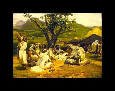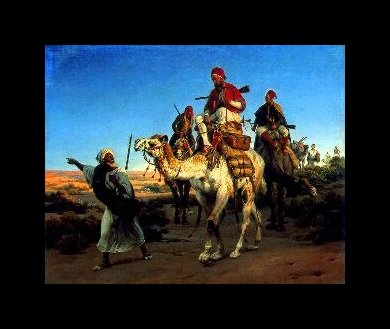 In his painting, ‘The First Mass in Kablyia’, he depicts the mass celebrated in the Kablyia mountain range, in June 1854, to mark the anniversary of the French landing in Algeria, and the submission of the native tribes. In this painting we see Catholic priests on an altar celebrating mass, with Oriental soldiers in the foreground kneeling on the ground. In fact, Vernet participated in this mass, and helped construct the altar. Throughout his whole career he was to have an interest in Oriental scenes, and the Wallace Collection in London has an enormous number of his paintings in this style, including, ‘Arabs Traveling in the Desert’, and ‘Arab Tale Teller’.