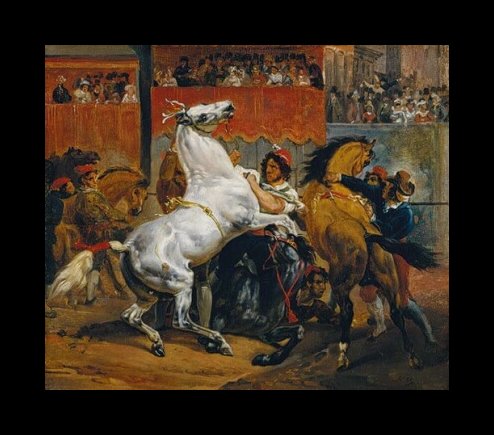 He used these paintings of battle scenes to allow him to portray Oriental costumes, and weapons, in which he had a great interest. The great Oriental painter, Eugene Delacroix was also an admirer of his work, and often made reference to Vernet’s remarkable ease of composition.