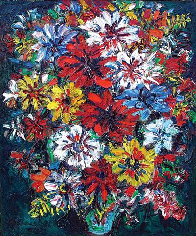 Su obra está plagada de catedrales, brujas y diablos. Hacia fines de los cuarenta su mezcla ecléctica de estilos conforma un patrón constante, mostrando una masa de detalles de manera compleja e intrincada con una o más figuras u objetos perceptibles que emergen de la misma. Sus naturalezas muertas también están abarrotadas y animadas, a menudo con una paleta impactante. Son explosiones de flora. En lo que respecta a su composición son muy semejantes. Las flores incendiarias están contenidas en un florero y llenan la tela hasta un punto que parece que van a salir de la misma, acomodadas (si ésta puede ser la mejor definición) dentro de una mas circular.